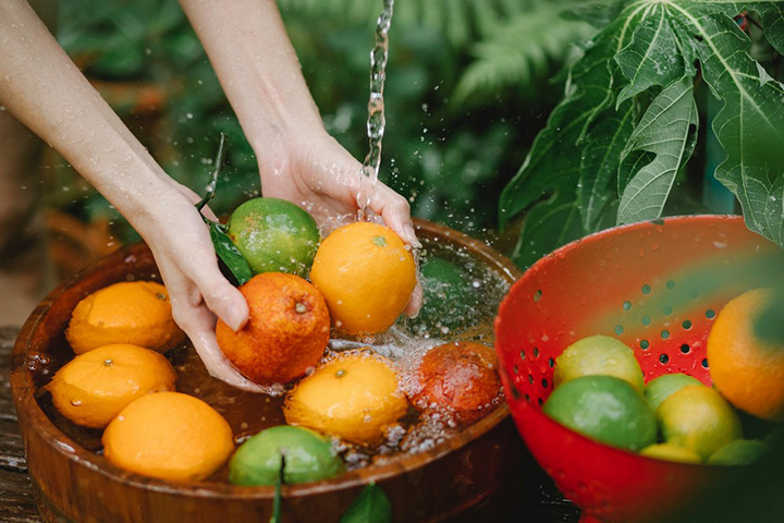吃水果前要洗净、削皮以减少细菌入口,这是人们都知道的道理,但现代研究认为果皮营养价值也很高,水果应当带皮吃,这样吃水果前的消毒就很重要。一般的方法是使用热水烫一下水果,可以杀灭一部分细菌,有条件的可以使用一些水果专用的清洗液,消毒效果比较好。